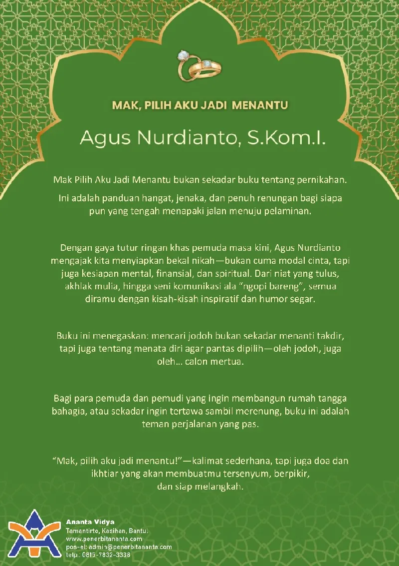 Ini adalah panduan hangat, jenaka, dan penuh renungan bagi siapa pun yang tengah menapaki jalan menuju pelaminan.