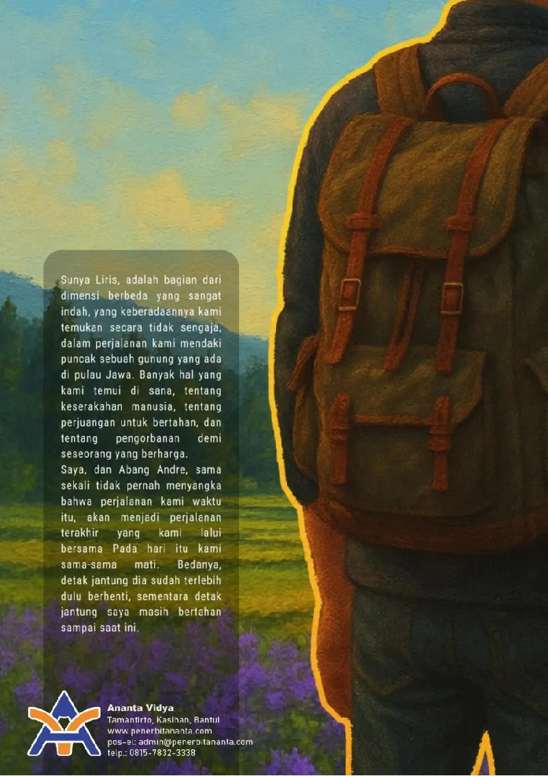 Sunya Liris, adalah bagian dari dimensi berbeda yang sangat indah, yang keberadaannya kami temukan secara tidak sengaja, dalam perjalanan kami mendaki puncak sebuah gunung yang ada di pulau Jawa. Banyak hal yang kami temui di sana, tentang keserakahan manusia, tentang perjuangan untuk bertahan, dan tentang pengorbanan demi seseorang yang berharga.